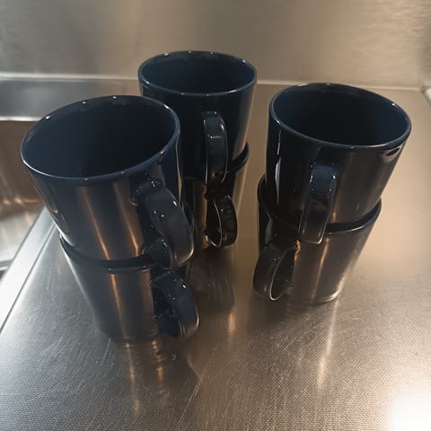 6kpl Teeman vihreää mukia. Olleet käytössä, mutta pidetty siististi ja yleisilme on virheetön. Pientä hiusnaarmua ja käytön jälkeä näkyvissä, ei tarroja.