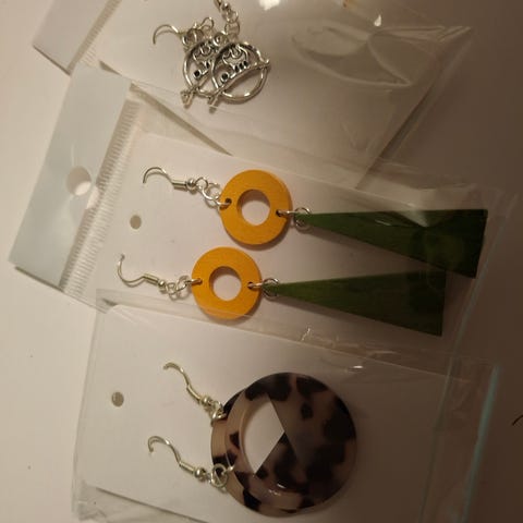 Itsetehtyjä korvakoruja 3 paria. Uusia.