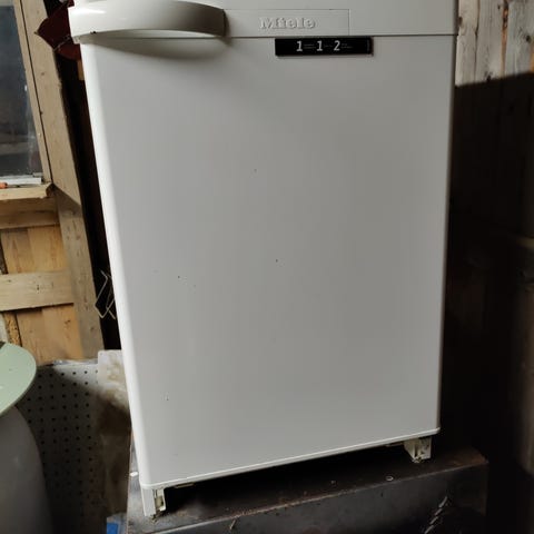 Toimiva Mielen valkoinen jääkaappi. Kaapissa iän tuomaa kulumaa eli tiivisteet ja muoviosat haljenneet paikoin sekä ovessa lommoja ja naarmuja, nämä huomioitu hinnassa.