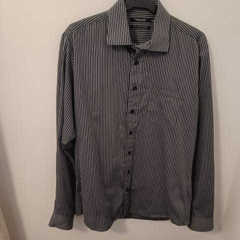 Miesten viinipunaraidallinen kauluspaita koossa M. Edessä tasku. Hyvässä kunnossa, ollut vähällä käytöllä.