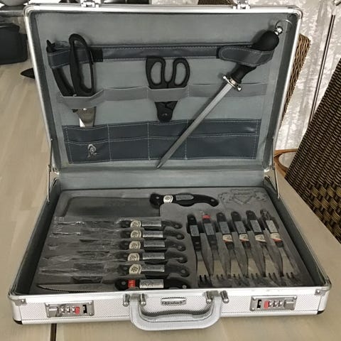 Osa tuotteista ollut vain muutaman kerran käytössä, joten ovat uutta vastaavia. Veitsisarjaa ei ole käytetty kertaakaan.