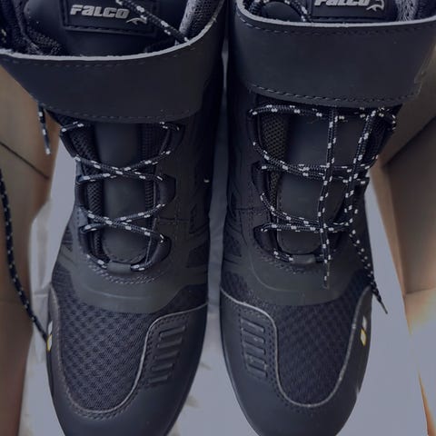 Hyväkuntoiset moottoripyöräkengät, jotka jäi yli kun pyörä meni rosvojen matkaan.