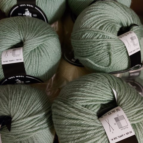 Mayflowerin Easy Care Merino -lankaa 18 kpl 50 gramman keriä myynnissä, 3 euroa per kerä. 9 kerää saa 25 eurolla ja kaikki 18 kerää 49 eurolla. Lanka on sataprosenttista merinovillaa. Kaikki kerät ovat samaa värierää, paitsi yhden kerän vyötteestä tosin näyttää puuttuvan eräkoodi. Värin nimi on Mellow yellow. Värin koodi on 055.