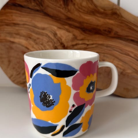 2 kappaletta virheettömiä Marimekon Rosarium-kuosin korvattomia kuppeja koossa 2dl / 0,2l.