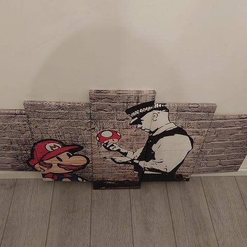 Myydään tarpeettomana Super Mario taulu. Julisteen koko 61cm×91,5cm.