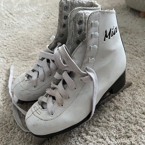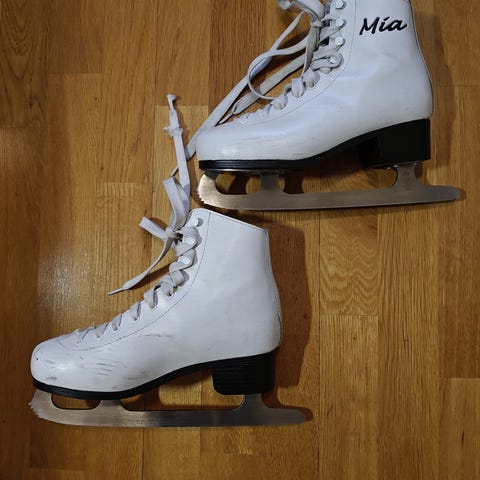 Mia kaunoluistimet, koko 39, valkoinen väri. Luistimet on hyvässä kunnossa vain muutamia kertoja käytetty. Luistimen sisällä on lämmin vuori.