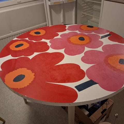 Ostettu pöytä. Muutamia kolhuja on ja kuvio ei niin tarkka. Ollut käytössä kuukauden päivät. Harrastaja tehnyt pöydän ja maalannut. Hinnassa huomioitu kolhut ym. Postit lisätään tarvittaessa