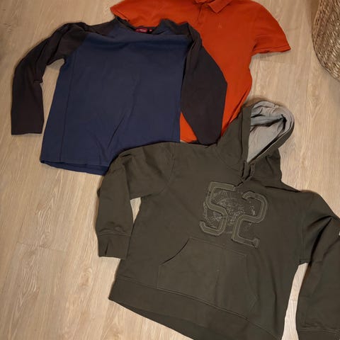 Siisti vaatepaketti käytettyjä paitoja kokoa L-XL-XXL. Ehjiä ja tahrattomia, vähäistä nukkaa ja haalistumaa voi olla.