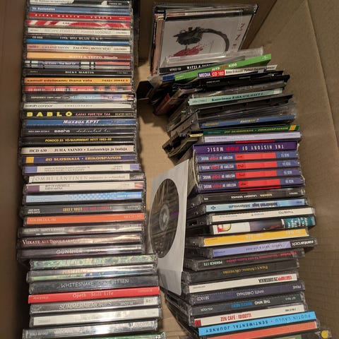 Iso kasa cd levyjä + 3 kpl telineitä