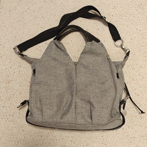 Ainoa miinus, että ommel purkautunut edessä olevan vetoketju taskun yläreunasta. Näppärä korjaa tai vie suutarille. Meitä ei käytössä haitannut. Katso kuva.