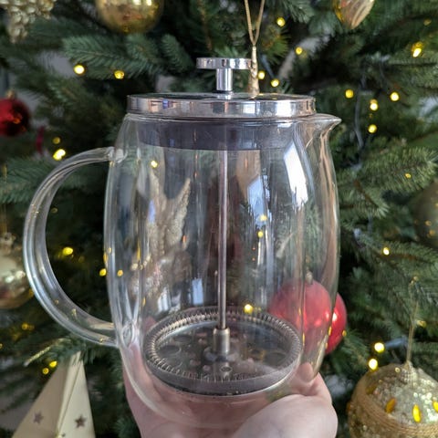 IKEA pressopannu hyvässä kunnossa. Käy teen tai kahvin keittämiseen. Isompi malli.