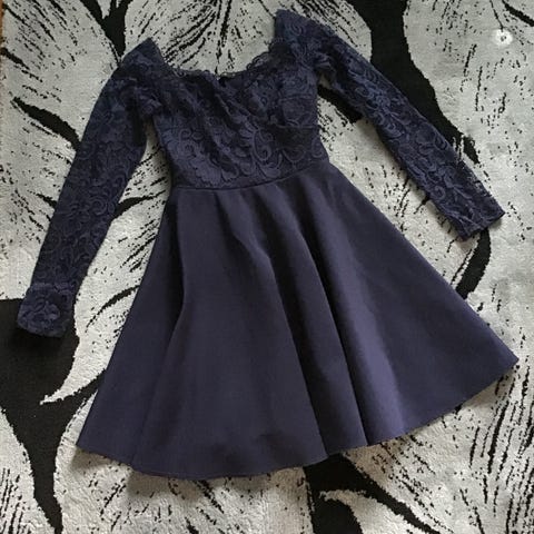 Vilan kaunis pitsimekko, koko S. Mekossa merkintänä koko M, mutta vastaa enemmän S kokoa. Lappu leikattu irti. Kiinteä alusmekko.