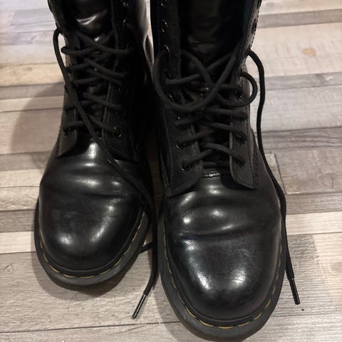 Second handina ostetut Martensit eteenpäin. Ostaessa olivat käyttämättömät ja itsekin kävin niillä vain pari kertaa lähikaupassa kun kokeilin ovatko sopivat vai ei. Olen aiemmin omistanut vastaavat jotka sopivat itselle täydellisesti, mutta nämä olivat vähän turhan naftit. En tiedä onko kengän malli vai oma jalka muuttunut useamman vuoden aikana.