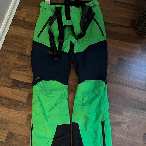 Käyttämättömät henkekselillä varustetut ulkohousut.