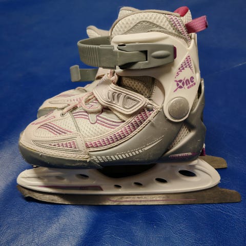 Lasten säädettävän koon luistimet. Muuten kunto erittäin hyvä, mutta toinen kiristyssolki katkennut aikoinaan ja se korjattu. Sen vuoksi myydään halvalla.