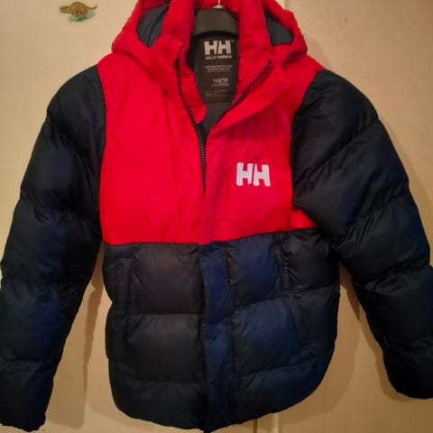 Siisti ja lämmin talvitakki. Tummansininen ja punainen, kokoa 140.