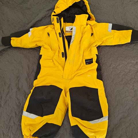 Polarn O. Pyret weather pro toppahaalari, koko 86. Lämmin ja vedenpitävä. Hyvässä kunnossa, ei selkeää kulumaa pesussa tai polvissa, mutta toki käytetty, ettei enää niin muhkea kuin uutena. Ryppyinen vain säilytyksen jälkeen.