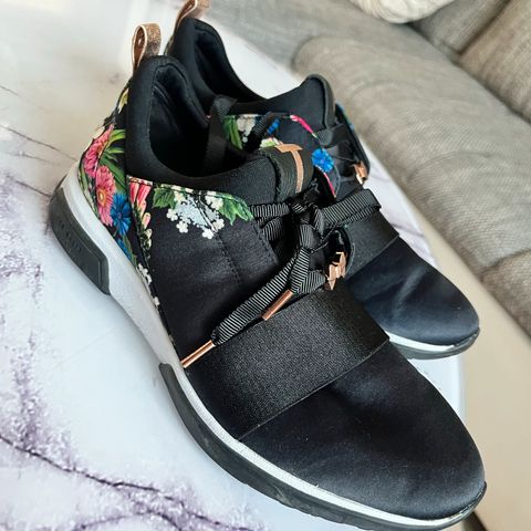 TED BAKER kengät lenkkarit nahkaa valkoiset, jossa vaaleanpunainen- kulta - koristenauhamainen koriste, koko 37, siistit, vähän käytetty . Postitan, kun tilisiirto näkyy tilillä.