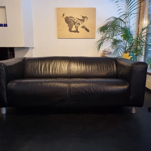Marks of use in the leather, sold with an Ikea cover that makes it more cosy.