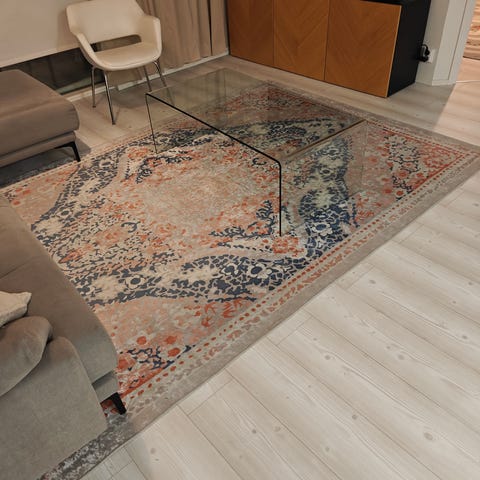 Hyväkuntoinen Vallilan Sydänpuu -matto.
