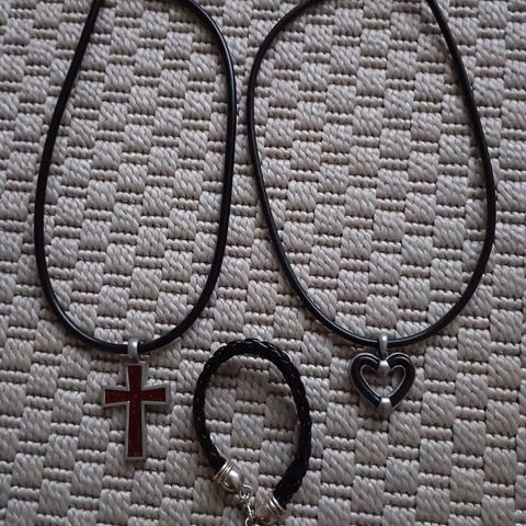 Pastoraali-sarjasta tehdyt, kaulakoru 4 x 4.5 cm ja korvakorut 2 x 1 cm, ketju 70 cm.