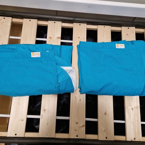 Upea 150 x 70 lasten sänkyyn peitto. Vetoketjut pitkällä sivuilla, päädyissä tarrat. Pesun jälkeen hieman ryppyinen (silittämättä)