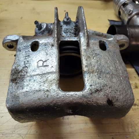 Takajarrusatula, vasen, Volvo S/V 40 1996-2004, alkuperäinen. Purettu 1999 S40 dieselistä. Tiivisteet uudet, seisontajarruvipu herkistetty, voideltu ja tiivistetty. Jarruletkun liitin tulpattu. Toimitus sisältyy hintaan.