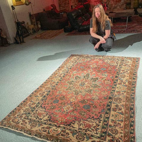 käsinsolmittu itämainen aitomatto villamatto vintage persialainen aito villa ghom pinkki vaaleanpunainen vaalea pastelli matto käsinkudottu käsin käsintehty käsityö antiikkimatto vintagematto helsinki helsingissä