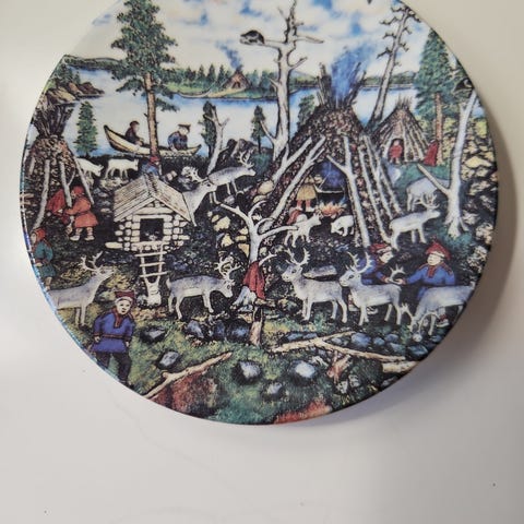 Hieno, uudenveroinen Arabian seinälautanen, Andreas Alariesto, halkaisija 12cm.