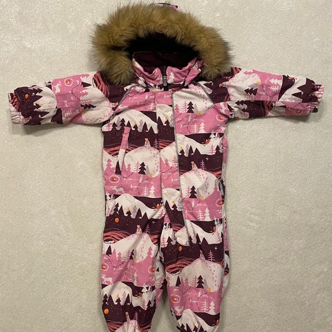 Reiman toppahaalari Lappi kokoa 92. Vaatii korjausta! Takapuolessa noin 6-7 cm viilto. Lisäksi ruskea tahra takapuolessa, ks. kuva. Vasemmassa lahkeessa edessä myös ruskea viiva. Vetoketjun suojan yläosassa haalea tahra (just ja just huomaa). Muuten kangas hyvässä kunnossa. Toinen lahjelenksu vaihdettu Kuoma haalarin lenksulla.