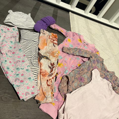 Vauvan vaatepaketti tytölle kokoa 68 & 74. Hyvä- ja siistikuntoista vaatetta, toisessa muumiyöppärissä pieni kuluma josta kuva.