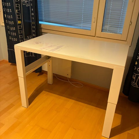 Ikea Påhl työpöytä ja pöytähylly. Yhdellä tytöllä käytetty. Joitain käytön jälkiä löytyy. Mm. Työpöydän pinnassa kaksi pientä jälkeä, jossa pinta rikki. Hyllyn taistapahvissa rasvajälki. Yleisilme kuitenkin siisti.