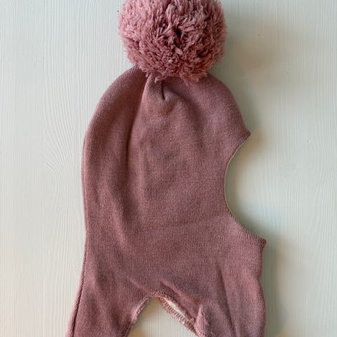 Muutamasti käytetty Mainion kauniin punertavan ruskea balaclava. One size, menee vauvasta noin kokoon 50 saakka. Materiaali orgaaninen puuvilla.