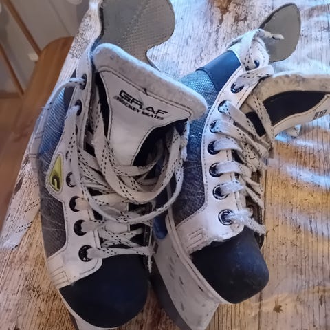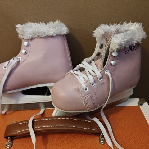 Annetaan tyttöjen luistimet kokoa 31. Käytönjälkeä aikalailla (ulkopinnassa), kuten kuvasta näkyy. Ovat kuitenkin muuten ehjät ja luistelukuntoiset.