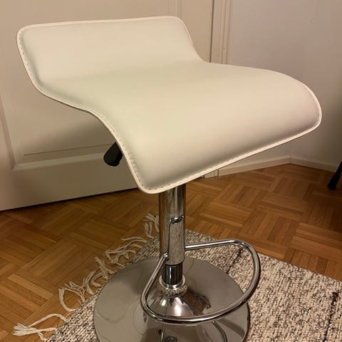 Metallinen jämäkkä baarijakkara, jonka päällisosa kärsinyt kukkaruukusta. Muuten siisti. Vaatii kunnostusta tai ruukkua päälle 😊
