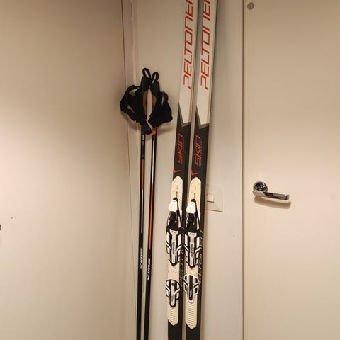 Peltonen Racing Skin Classic Pro sukset, valikoitu 60kg hiihtäjälle ja menevät potkusta riippuen 57-67kg hiihtäjälle. Uutena hiottu matala S7-hionta, joten suksi sopii monelle kelille ja karvat hyvässä kunnossa, joten näissä paljon kilometrejä edessä.