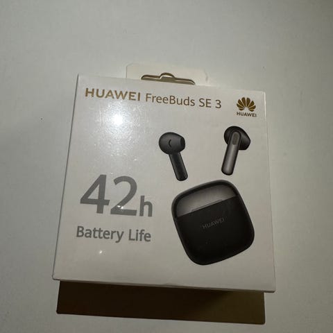 Huawei FreeBuds SE 3 langattomat kuulokkeet mustassa värissä. Kuulokkeet tarjoavat jopa 42 tunnin akun keston. Mukana latauskotelo. Sopivat langattomaan kuunteluun ja puheluihin. Uusi avaamaton paketti. Sain sen lahjaksi