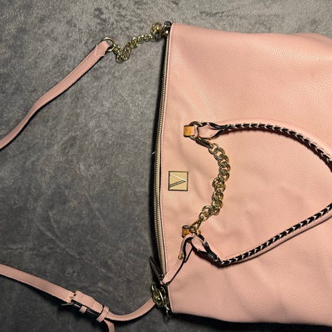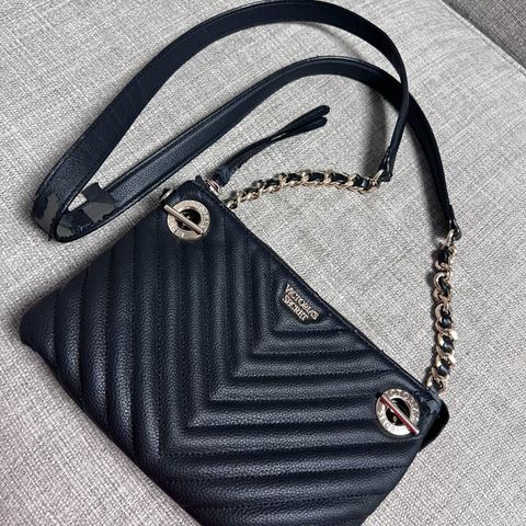 Victoria's Secret olkalaukku, uutta vastaava, jäänyt vähälle käytölle. Sisältää säädettävän olkahihnan ketjuyksityiskohdilla.