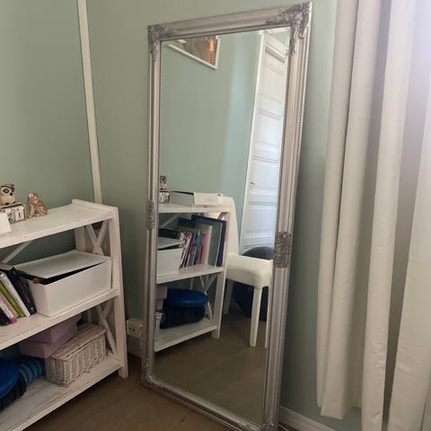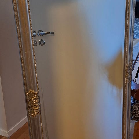 Seinään ripustettava peili hopean värisellä kehyksillä. Koko 40x60cm