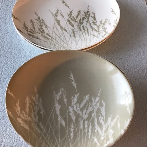 Myyntiin kolme kappaletta Prismasta ostettuja astioita = kattaus yhdelle hengelle. Ruokalautanen halkaisija 26 cm, aamiaislautanen halkaisija 21 cm sekä kulho halkaisija 14,5 cm ja korkeus 7 cm. Ostettu tarjoiluastioiksi, mutta jääneet käyttämättä ts. ovat uudenveroisessa kunnossa. Sävyt pehmeän valkoinen ja harmaa. Myydään settinä hintaan 10,- euroa. Nouto Turun Länsikeskuksesta tai postitus hintaan 10,90.