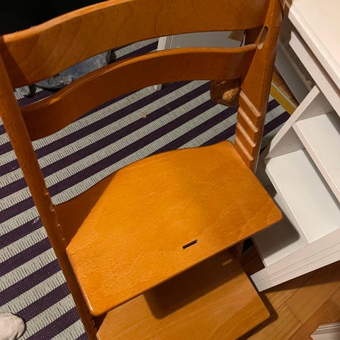 Musta Stokken syöttötuoli. Säädettävä istuin- ja jalkatuki, sopii eri-ikäisille lapsille.