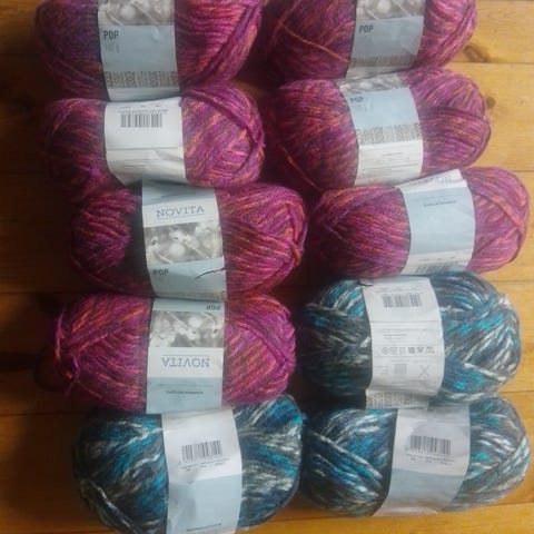 5 kerää Novita Rulla lankaa 3 kpl väriä 875 ja 2 kpl väriä 859