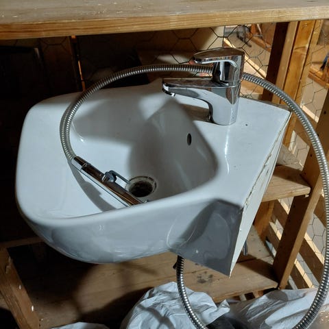 Kuvan allas, hana ja bidee yhteishintaan. Kuvan toinen hana myydään erikseen.