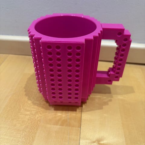 Hakusanat: Lego, palikka, palikkamuki, rakennuspalikka, muki, juomamuki, kynäteline