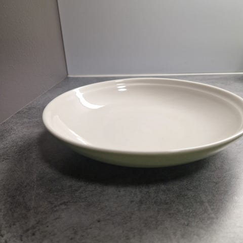 Kaksi hyväkuntoista Kermansaven "Oliivi"-sarjan matalaa lautasta. Halkaisija 26cm. Yhteishinta.