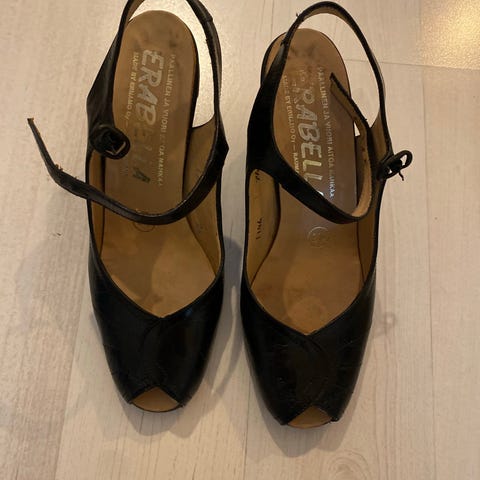 Pronssinhohtoiset vegannahkaiset DINSKOn platform korkosandaalit 11cm, Vintage mallia 20- ja 30-luvulta. Korkeasta korosta huolimatta hyvä ja tukeva jalassa, joten sopii vaikka tanssiparketeille. Koko EU 37 todenmukainen. Olleet vain kevyessä sisäkäytössä. Hyvin varastoitu, ei hajuja.