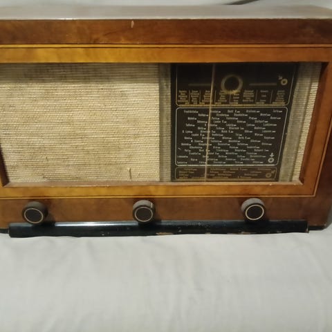 Fenno Radio vanha puinen radio, jossa on puurunko ja kangasverhoiltu kaiutinosa. Radio on vintage-tyyliä ja toimii verkkovirralla. Sopii keräilyyn tai sisustuselementiksi. Pituus 49 cm. Korkeus 33, leveys/syvyys 20 cm. Säilytetty lämpimässä autotallissa. Alkuperäisessä laatikossa.