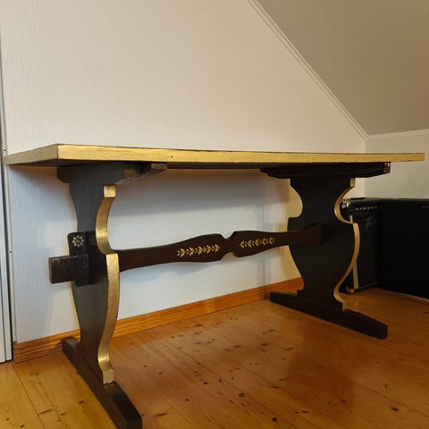 Upea kuvan pirttipöytä myytävänä. Kunto hyvä. Runko erittäin tukeva. Ajan tuomia jälkiä / kolhuja.