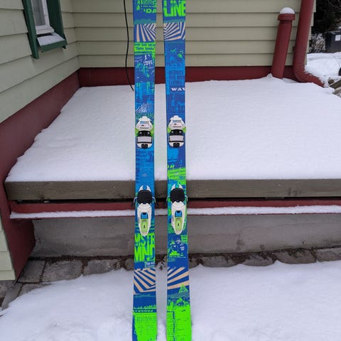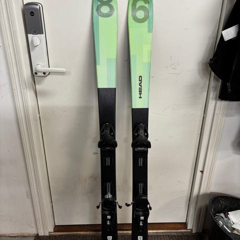 Head Souphead twintip-sukset, pituus 117 cm. Paljon lasketut, mutta hyväkuntoiset. Siteessä helppo säätö.