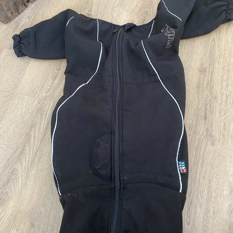 Siisti, viininpunainen toppatakki. Itse tehty aukko valjaskiinnitykseen. Lämmin ja mukavan pehmeä materiaali. Koko 50.